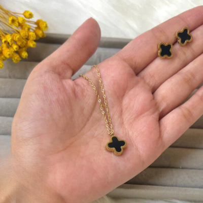 ✔ Élégance intemporelle : Le trèfle noir à quatre feuilles symbolise la chance et le raffinement.